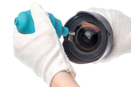 cleaning camera lens with a air blowing