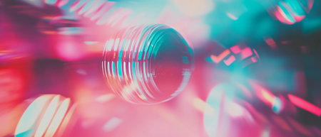 A close-up of a camera lens capturing colorful bokeh reflections in a creative and modern photography setting.