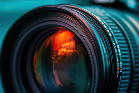 Camera lens with lense reflections, Professional camera