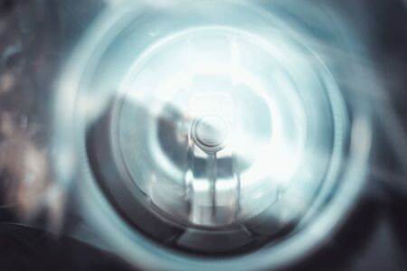 close up of a car headlight in the dark, abstract background