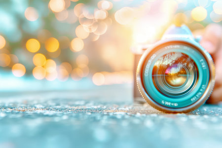 Bokeh Background with Camera Lens. Generative AI