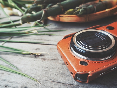 Bamboo shoot with vintage camera