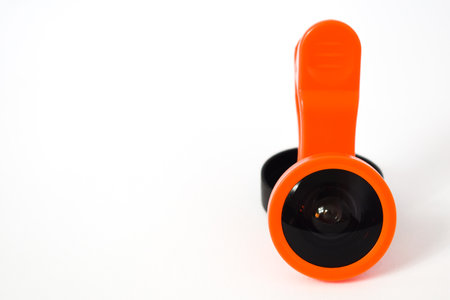 Extension Clip on fisheye lens for mobile device, smartphone or tablet isolated on white background, modern mini portable gadget, mini objective to attact on smartphone photo camera