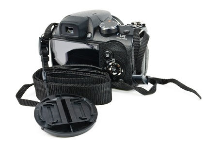Lens digital camera, selective focus, close-up, bokeh, isolated on blur background.Copy space for text.