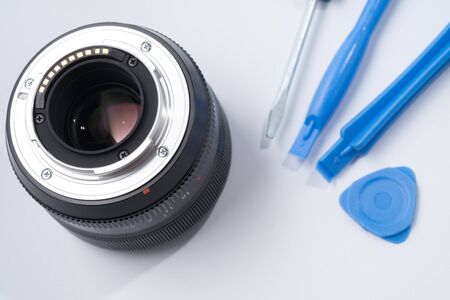 Dslr lens repair concept. isolated on white background