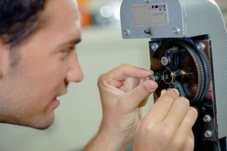 The Gemologist expertise in her laboratory fix the value of precious stone of the polariscope.