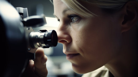 Scientific microscope data analysis in the metal lens at laboratory. research medicine concept.