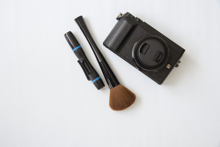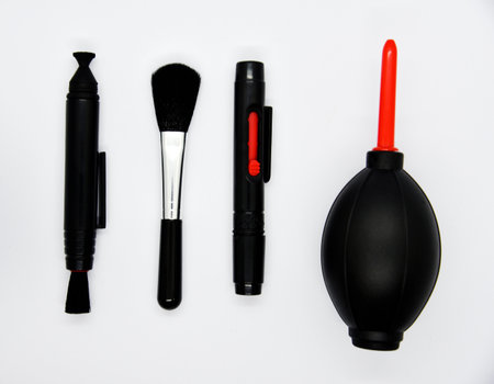Professional tools for cleaning the matrix of a DSLR camera, on a white background
