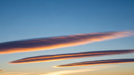 Textures showing lenticular clouds in a vibrant sunset sky with hues of pink orange and blue colors keywords:...
