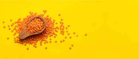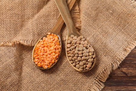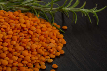 Red raw lentils on the desk