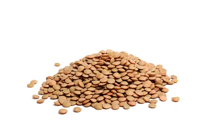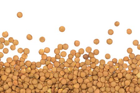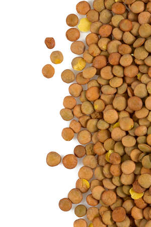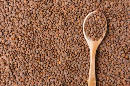 Close up brown lentil seeds background. Healthy vegeterian food.