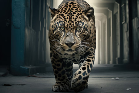 jaguar walk on street urban background