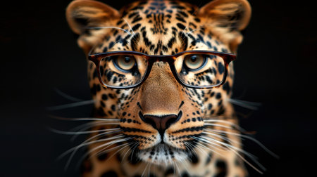 Meet the stylish leopard with eyeglasses, blending wild elegance and intelligence in a vibrant jungle setting.