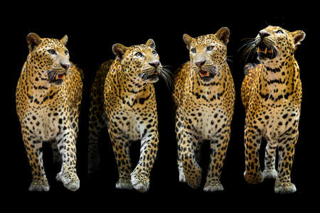 Leopards in the forest on a black background.