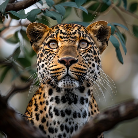 Portrait of a leopard in a tree, Kruger Park, South Africa