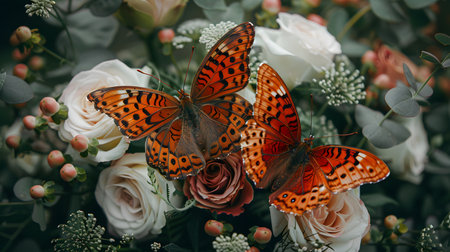 Illustration of a butterfly perched on a beautiful flower, beautiful