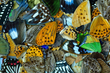 beautiful texture of butterfly wings pile up into great collection, colorful background