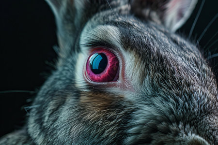 Rabbit with striking pink and blue eye creating a captivating image