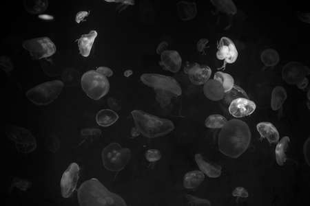 Cluster of moon jellyfish. aurelia aurita. High quality photo