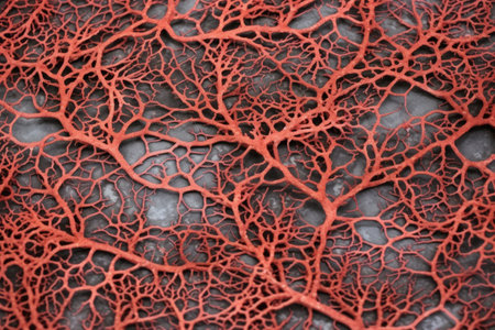 AI Generated. Intricate Red Organic Form with Branching Tendrils