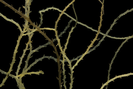 Artistic macro of red lacy foliage with intricate lines and shadows on branch