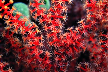 Macro photo of coral polyps and marine life taken on shallow scuba dive