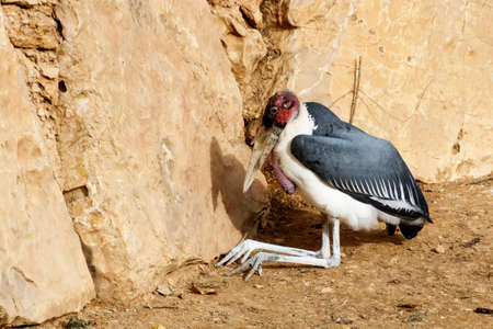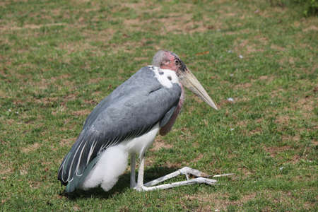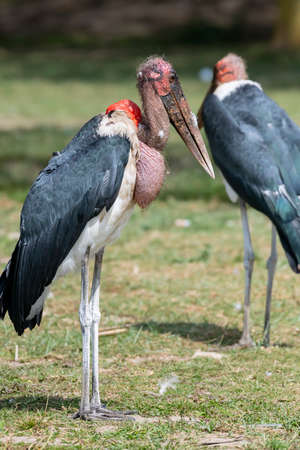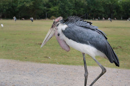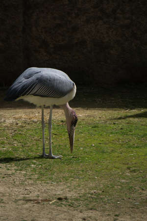 African marabou stands in zoo. Leptoptilos crumeniferus. bird is large. Old