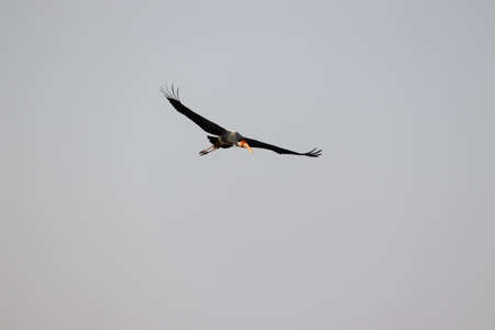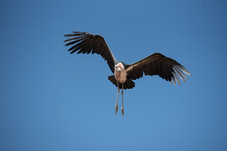 A Marabou Stork scavenger bird in mid flight near lake Koka in Ethiopia.