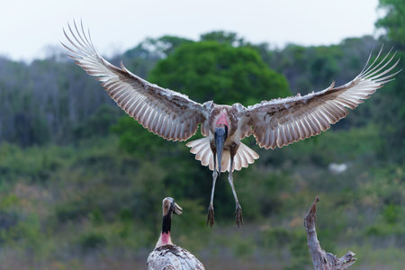 The jabiru (Jabiru mycteria) ia a big stork with a big nest. The young could already fly, but kept coming to the nest to be fed with fish in the Pantanal wetlands in Brazil.
