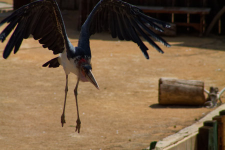 A large African Marabou bird with outstretched wings, getting ready to fly.