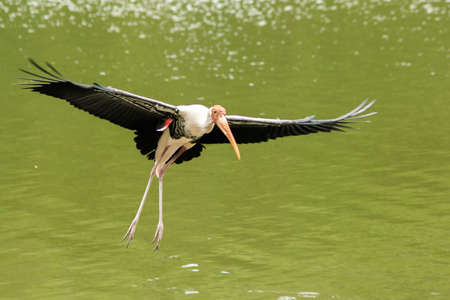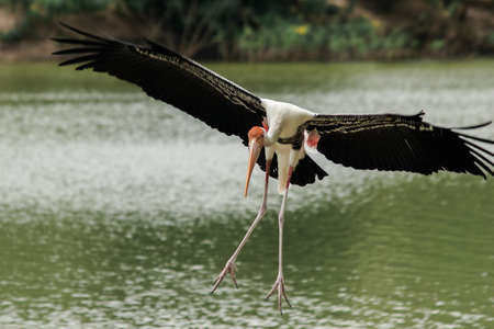 Painted Stork is flying over the pond. To feed on the herd in shallow waters along rivers or lakes