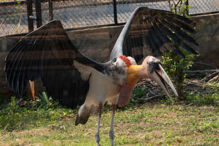 Huge Greater adjutant (Leptoptilos dubius) in Zoo cage. This large stork has a massive wedge-shaped bill, a bare head & a distinctive neck pouch. This bird mostly found in Assam (India) & Cambodi