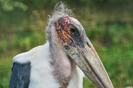 Portrait of large wading bird marabou stork (Leptoptilos crumenifer). Photography of nature and wildlife.