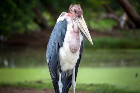 Greater Adjutant (Leptoptilos dubius), closeup with a long stomach.