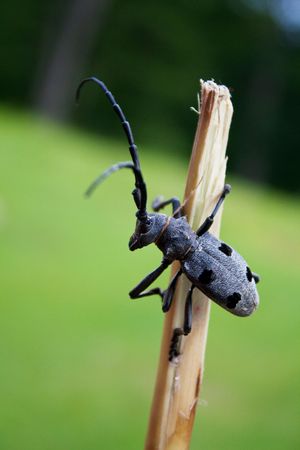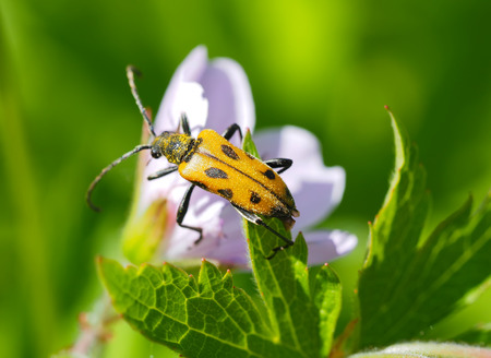 Spotted longhorn beetle on a plant