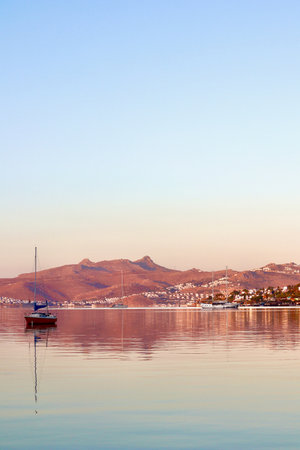 Breathtaking View of Gümüşlük Bay with Yachts and Nearby Greek Islands
