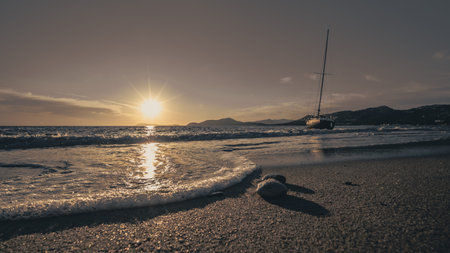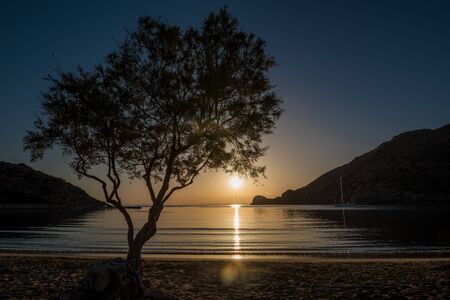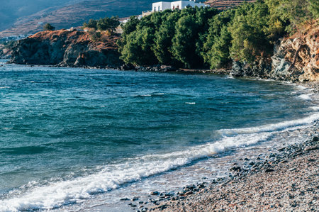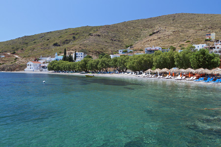 Empty quiet Stavros Beach at Tinos island, Greece. Perfect place to embrace the Aegean Sea