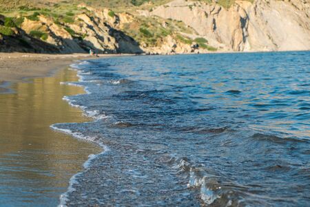 Spring landscape with the sea and sandy beach at Peloponnese, Greece