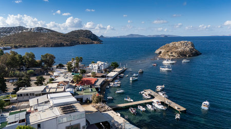Breathtaking View of Gümüşlük Bay with Yachts and Nearby Greek Islands