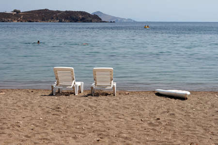 SANTORINI / GREECE - 4 JULY 2012: beach with a variety of entertainment for leisure, waiting for visitors 4 july 2012 Santorini.