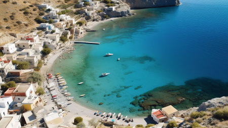 Generative AI : Aerial view of the Beach at the Port in Fanari a small town facing the Thracian Sea East Macedonia and Thrace Greece