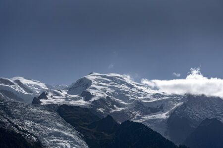 Mont Blanc massif landscape in Alps, French side.
