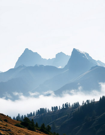 Mountain landscape in the morning mist.