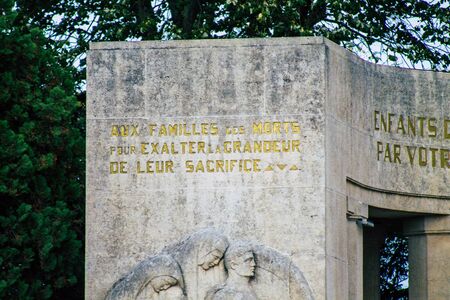 Reims France October 25 Closeup of the monument to the dead of the second world war of the city of Reims