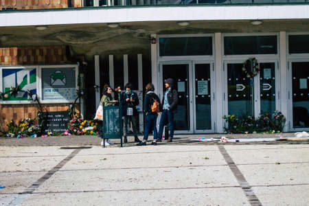 Reims France March 15, 2021 Demonstration in front of La Comédie de Reims, a cultural establishment closed for several months in order to fight against the Coronavirus epidemic hitting France