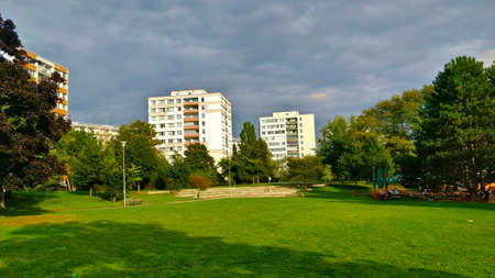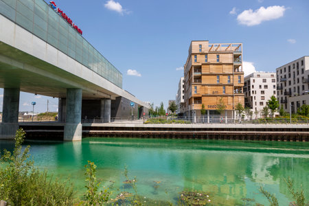 Vienna, Austria - June 14, 2023: Seestadt residential complex near Lake Asperner in Vienna