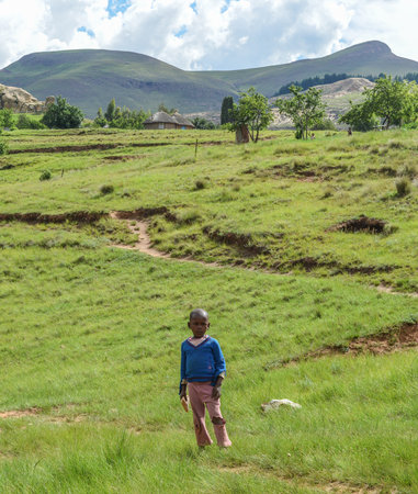 Butha-Buthe, Lesotho - December 17, 2012 A local Basotho boy from the Butha-Buthe region of Lesotho Lesotho is among the poorest countries in the world