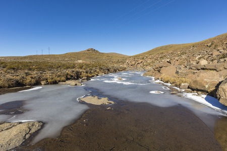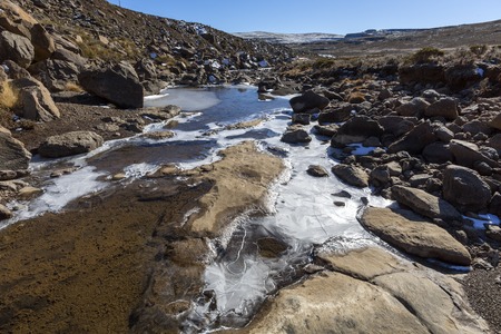Waterfall in the Sani Pass on the way from South Africa to Lestotho, part of the Drakensberg Mountains