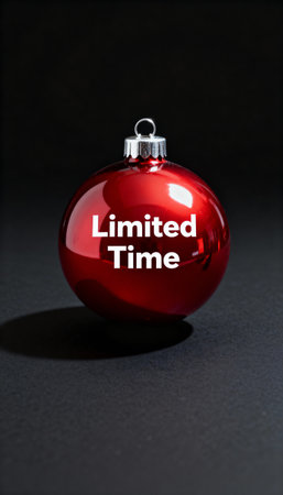 Red glossy Christmas ornament featuring the text Limited Time in bold white letters, placed against a dark background. Perfect for holiday promotions or festive themes.