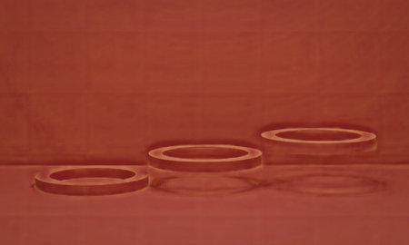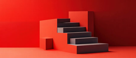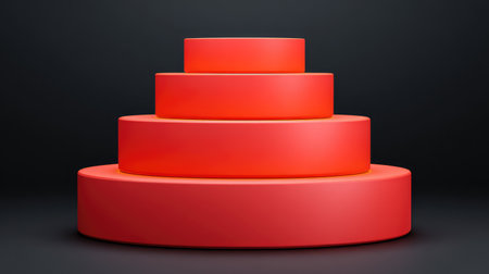 Dynamic arrangement of red circular platforms stacked in varying heights, creating a minimalist backdrop for creative presentations or product displays on a dark background.